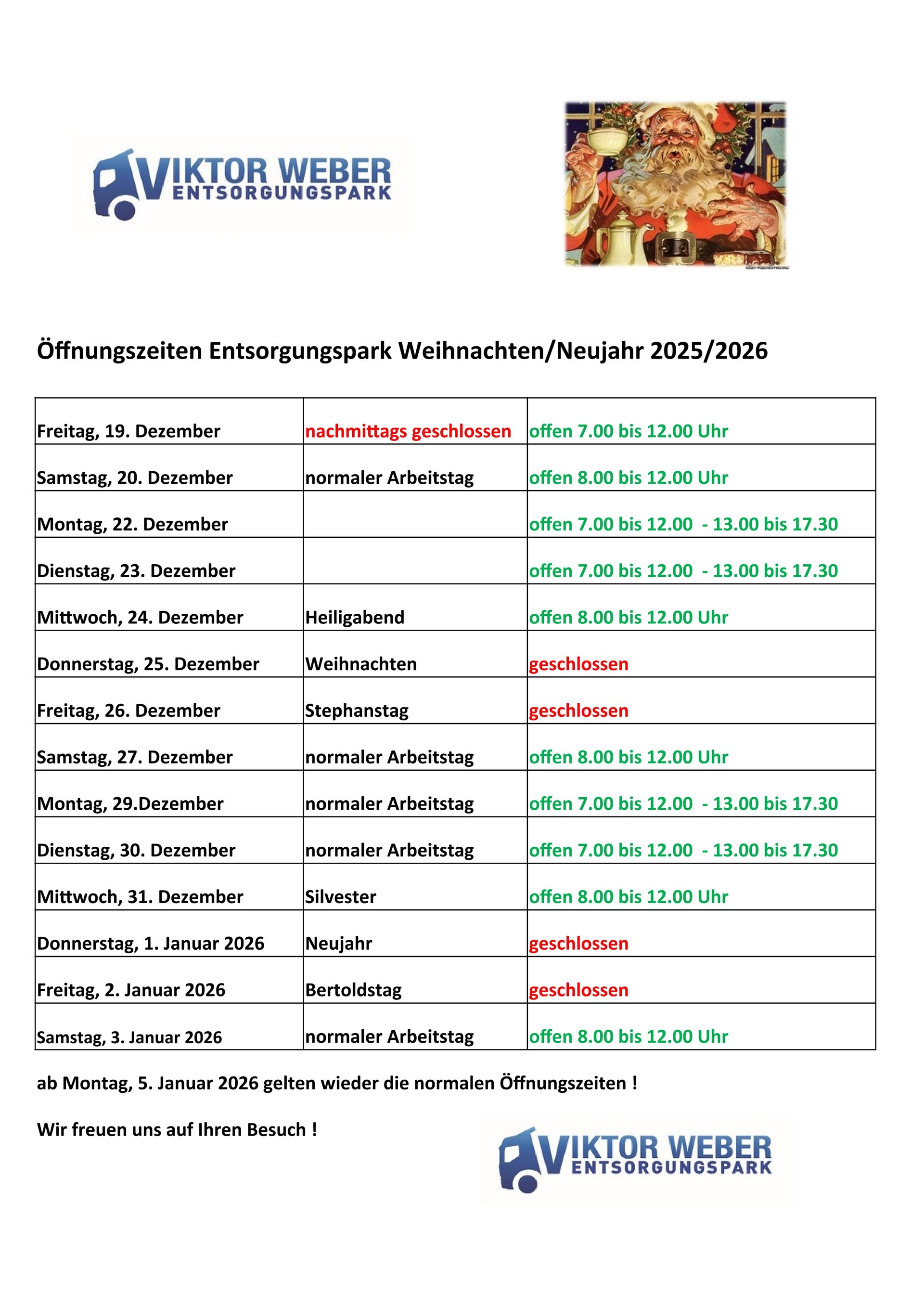 Öffnungszeiten Entsorgungspark Ostern 2025